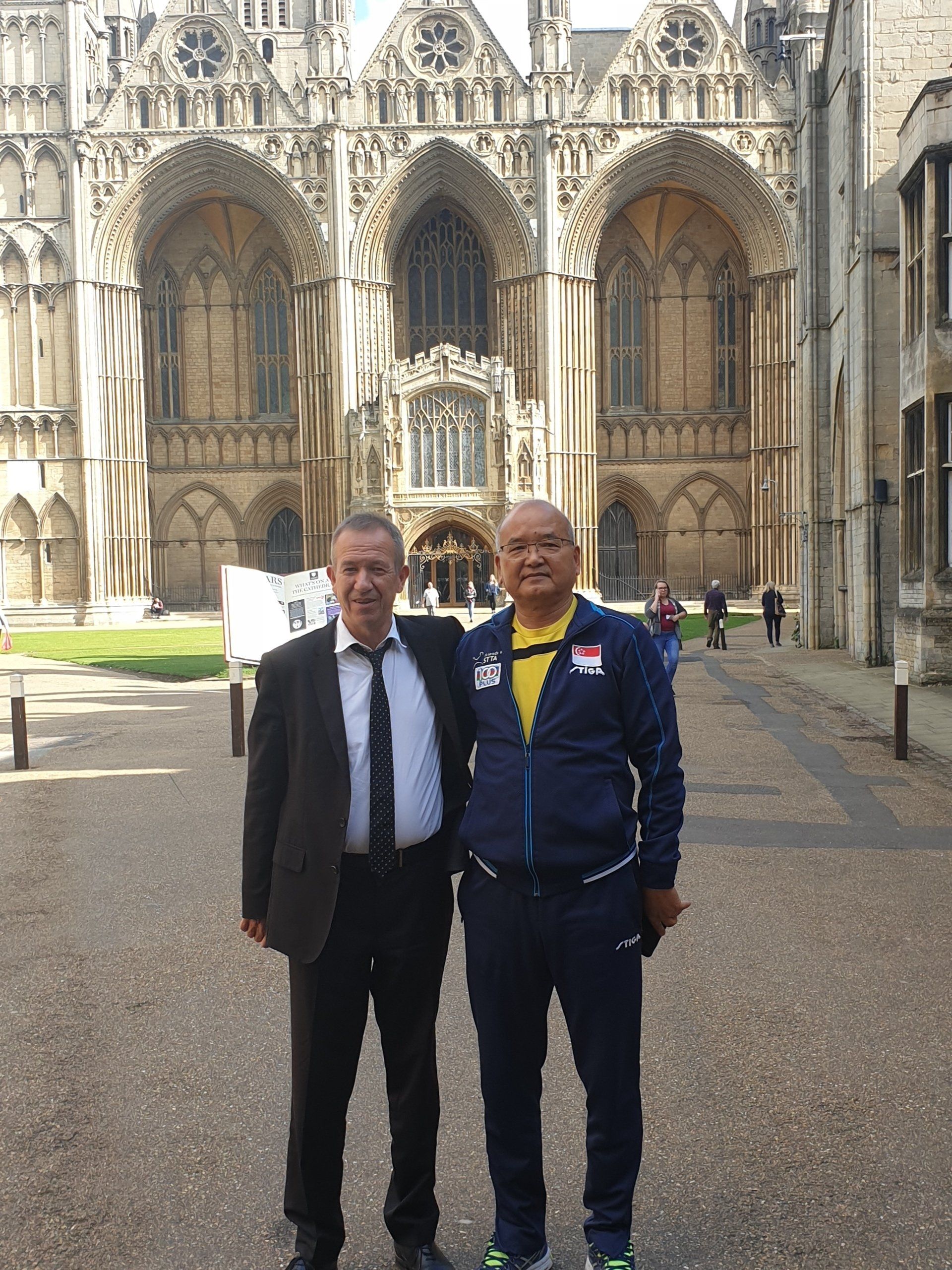 Photo: Julian (left) with Archway coach Jiayi Liu (formerly national coach for Singapore) in front of Peterborough Cathedral.