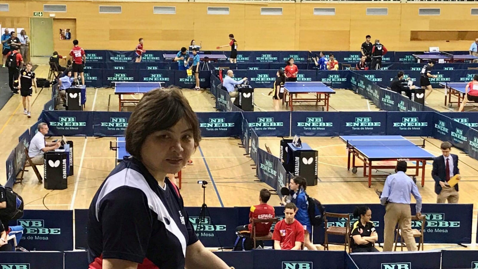 Saunders (pictured above with coach Kelly Sibley) won all three group matches in the Under-11 Girls’ Singles to earn a bye into the last four, where she was defeated in four games by host nation player Izabell Ivanics."